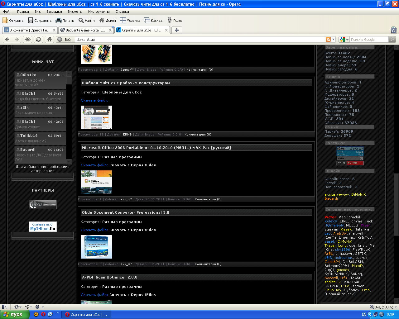 Домен Diz-Cs теперь не работает. Возможно кончился его срок (хотя возможно, что его заблокировали администраторы uCozа в наказание). Сайт теперь выглядит ужасно, все внутренние ссылки не работают. Ну уж Ваш то сайт всегда рулит! Так что посмотрим что будет дальше)