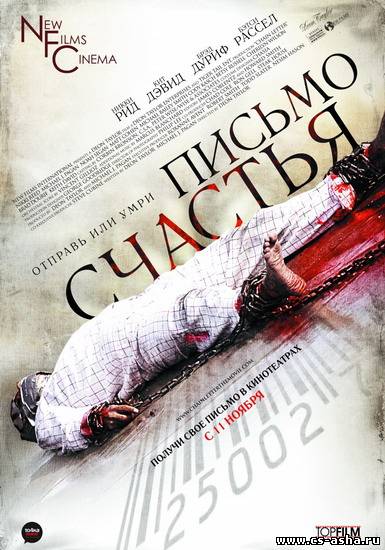 Оригинальное название: Chain Letter Название: Письмо счастья Год выхода: 2010 Страна: США Жанр: ужасы, триллер Режиссер: Деон Тейлор Сценарий: Диана Эрвин, Майкл Дж. Паган, Деон Тейлор В ролях: Бетси Расселл, Никки Рид, Брэд Дуриф, Кит Дэвид, Бай Лин, Шерилин Уилсон, Мэтт Коэн, Ной Сеган, Майкл Бэйли Смит, Брайан Ти