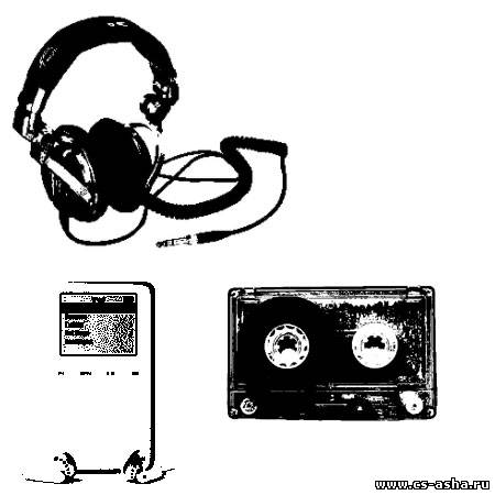 Кисти с наушниками, плеером, аудиокассетой.